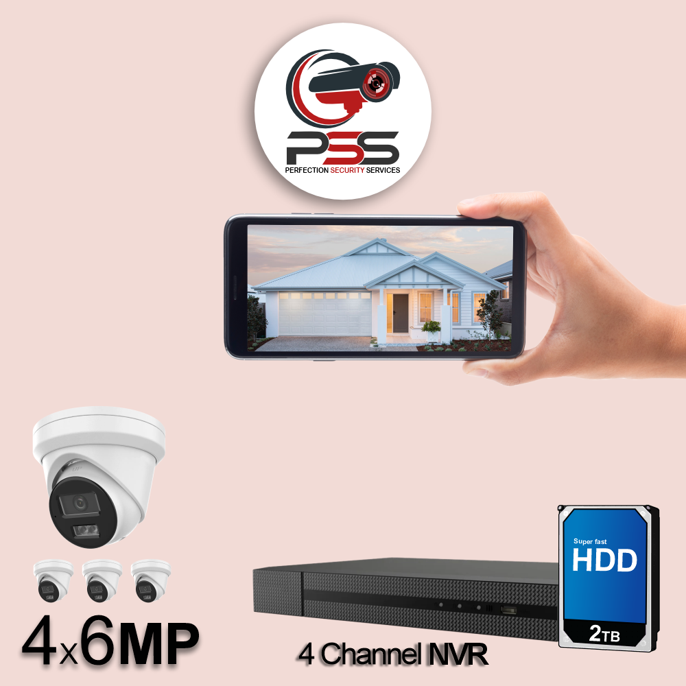 Hilook Security System: 4CH 8MP Lite NVR, 4 x 6MP Dome Camera, Starlight, SMD 4.0, AI SSA, HDD 2TB, Single Stroey installation (Cable+Socket+…)